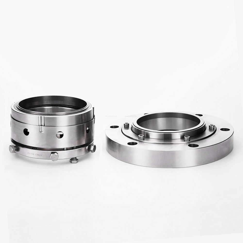 機(jī)械密封(mechanical seal)是指由至少一對垂直于旋轉(zhuǎn)軸線端面在流體壓力和補(bǔ)償機(jī)構(gòu)彈力(或磁力)的作用下以及輔助密封的配合下保持貼合且相對滑動所構(gòu)成的防止流體泄漏的裝置。主要部件包括動環(huán)、靜環(huán)、密封圈、冷卻裝置和壓緊彈簧。